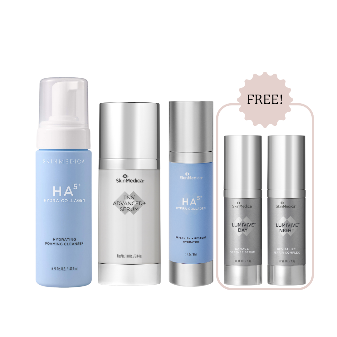 - TNS® Advanced+ Serum – SkinMedica’s most advanced growth factor blend to smooth lines, improve texture, and support collagen.