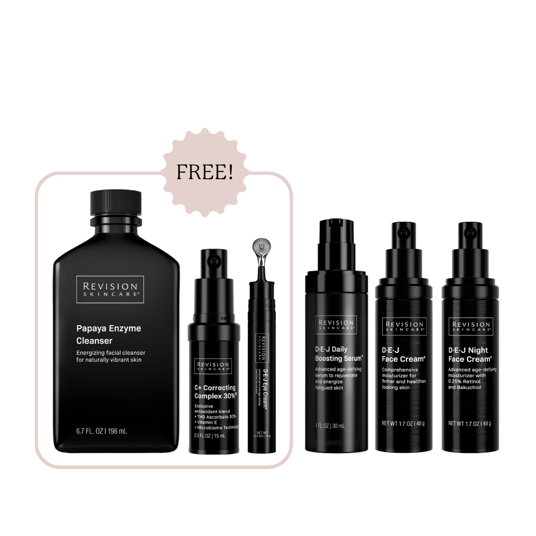 Revive. Restore. Rebuild. This clinical-grade anti-aging set from Revision Skincare is designed to target visible signs of aging at every layer of the skin—restoring a smoother, brighter, and more resilient complexion. Powered by the award-winning DEJ collection and boosted with powerhouse clinical-grade formulas, this regimen supports total skin renewal from the inside out.